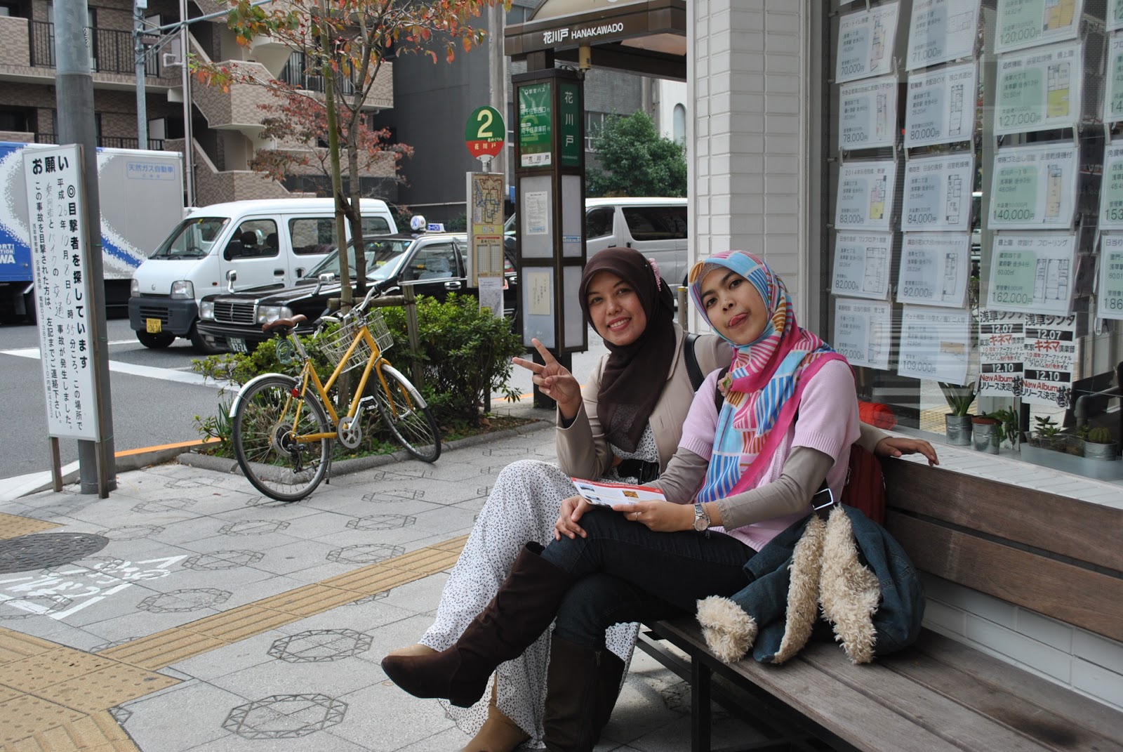 Setelah foto-foto centil dengan ABG-ABG Jepang, kami ngaso di pinggir sungai tersebut. Tempat tersebut sepertinya dijadikan tempat nongkrong. Walau demikian kondisinya bersih dan terawat. Bahkan di tempat-tempat duduk pinggir sungai dibangun model tingkat, sehingga kami bisa duduk-duduk di atas dan memandangi pemandangan dari atas sambil nyabutin daun-daun maple di pohon. Hehehe. Sayang sekali daerah sana kondisi pohon maple-nya belum seluruhnya orange, hanya beberapa daun yang gugur. Febi dan Saya sempat mengambil foto daun gugur sambil sedih, huhuhu.. Semoga di perjalanan ke Gunung Fuji kami menemukan spot pohon maple yang berwarna orange hangat itu. Semogaaaa..